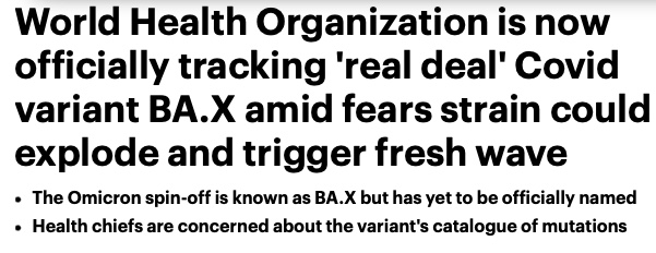 据每日邮报报道,世卫组织正在密切追踪一种奥密克戎(Omicron)的变异毒株——BA.X。