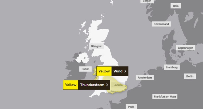 - 英国气象局警告称:英格兰南部地区今日将迎来半个多月的降雨量。预计在短短6小时内,部分地区降雨量将达到30毫米至40毫米。