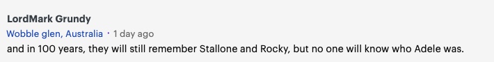 100年后,人们仍然会记得史泰龙和洛奇,但没有人会知道阿黛尔是谁。