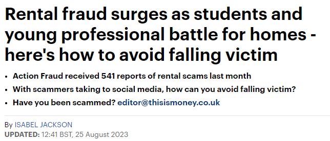 据悉,上个月英国从事反诈工作的有关机构Action Fraud就收到了541起关于租赁市场的诈骗举报,但有专家指出,这很可能只是租赁诈骗中的冰山一角,因为大多数诈骗都没有被举报。