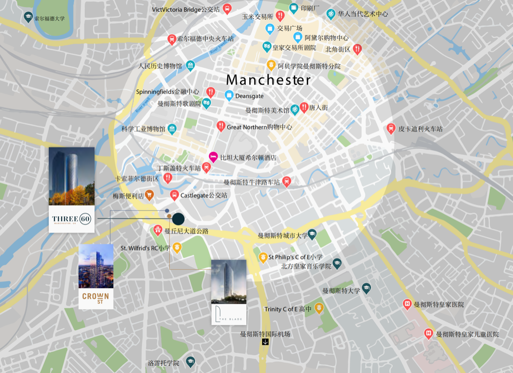 项目地处市中心西南门户,是城市西南腹地不可多得的甄选地段,与曼城重要交通枢纽仅数步之隔: