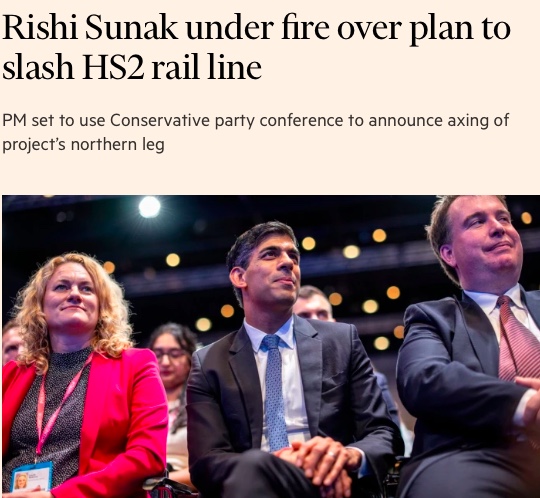 - 英国首相苏纳克计划削减HS2高铁线路,引发广泛抨击。
