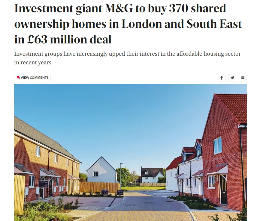 - 总部位于伦敦金融城的投资巨头M&G已与三家住房协会达成协议,将以6,270万英镑的价格在伦敦和英格兰东南部购买370套共享产权房…