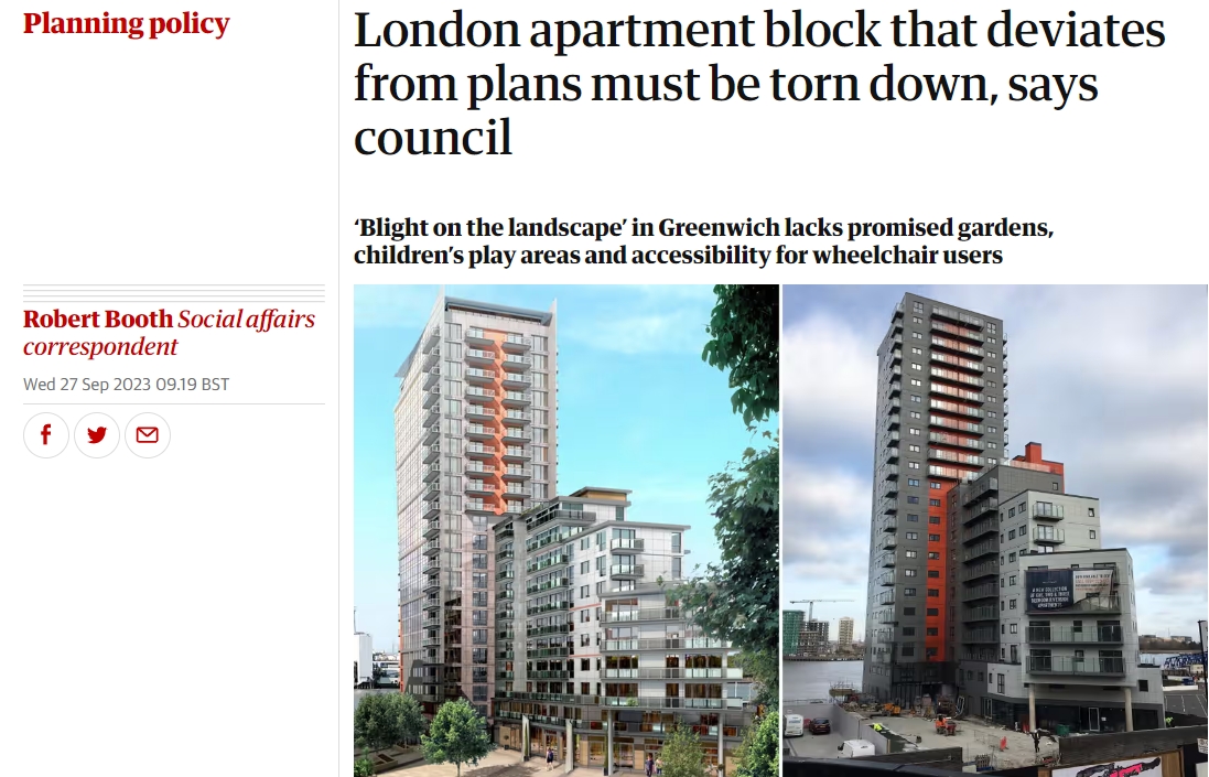 然而,格林威治议会却表示,开发商Comer Homes Group必须将这些建筑夷为平地,因为该项目有26处重大问题,与最初的规划许可完全不一致,严重违反了当地的规划法规。