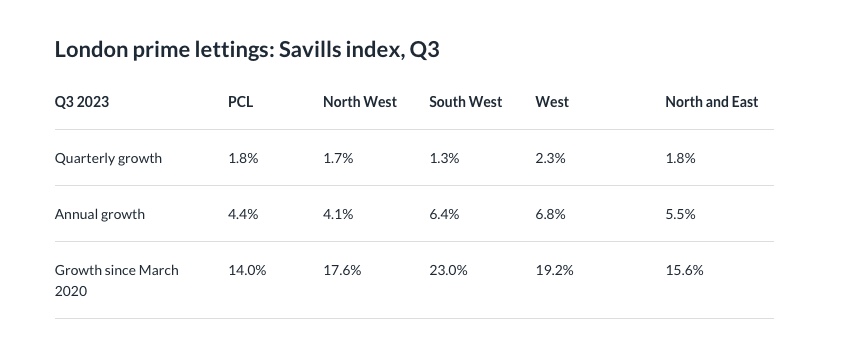 第一太平戴维斯(Savills)的最新数据显示:在伦敦黄金地段,第三季度租金增长率为+1.7%。租金受到“重返工作岗位和销售市场负担能力问题”的支撑。