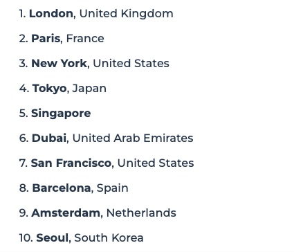 在这份榜单中,伦敦拔得头筹,力压巴黎、纽约等。