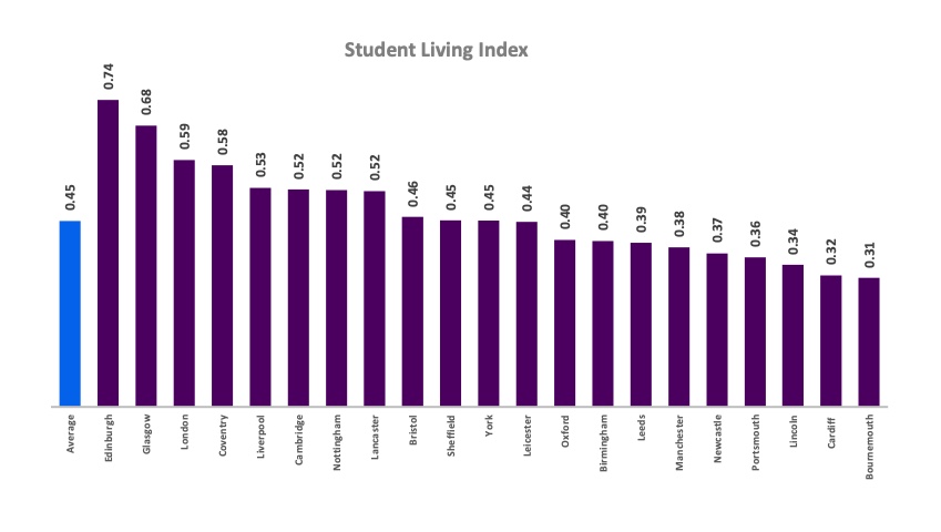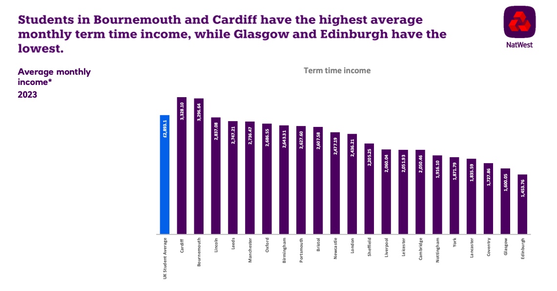 - 伯恩茅斯和卡迪夫的学生收入最高,爱丁堡和格拉斯哥的学生收入最低。