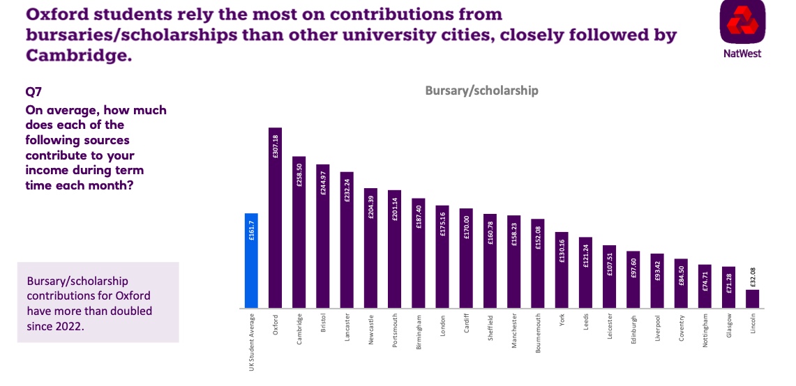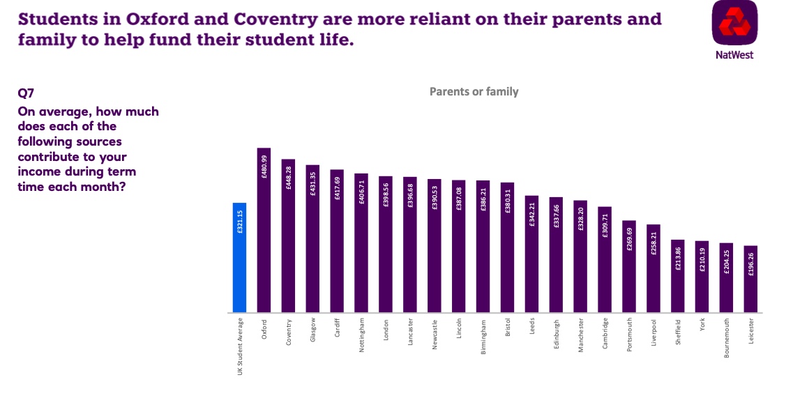 - 牛津和考文垂的学生最可能依赖父母/家庭的收入。