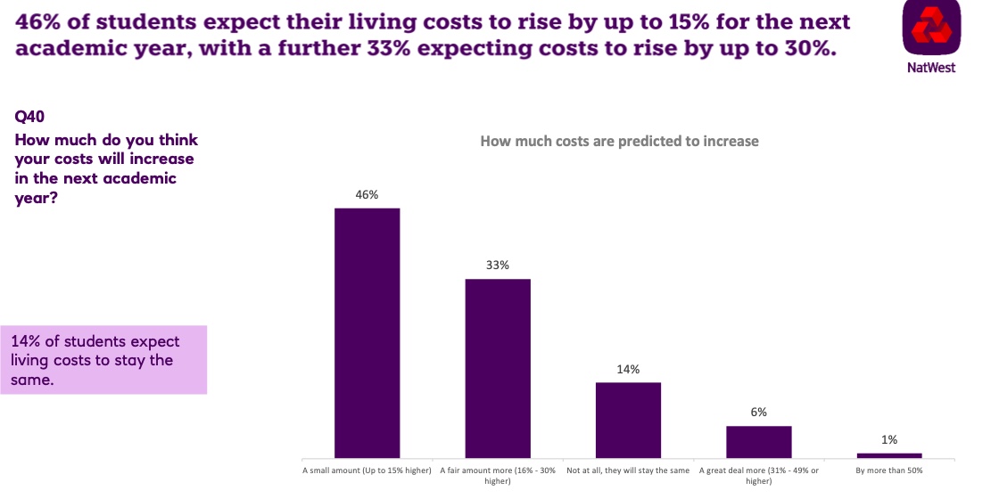 - 86%的学生预计下一学年的生活成本将进一步上涨。