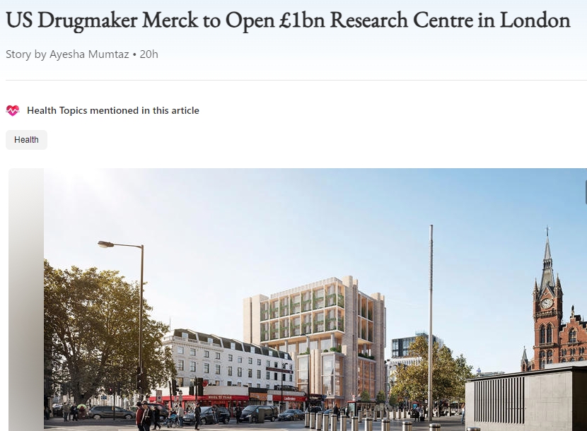 - 美国制药巨头Merck公司将斥资10亿英镑,在伦敦国王十字设立新的研究中心。此举被认为是对英国科技和人才投下了信任一票…
