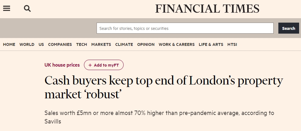 【现金买家让伦敦高端房产市场保持强劲】
