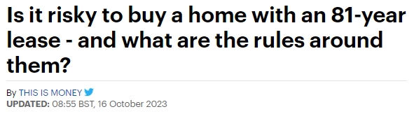 “我一直在网上浏览房产,发现靠近我孩子家的一套公寓看起来很完美。唯一的问题是,这是一处租赁产权房,租约还剩81年。”