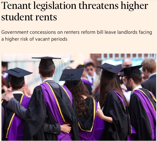 - 住房和房东团体警告称:由于立法改革,英国私人租赁房产的学生将面临租金上涨。