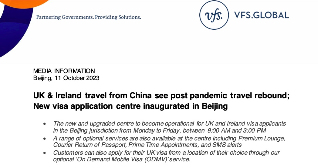 - 英国和爱尔兰出境游、留学签证申请复苏,全新升级的签证申请中心在北京正式运营。