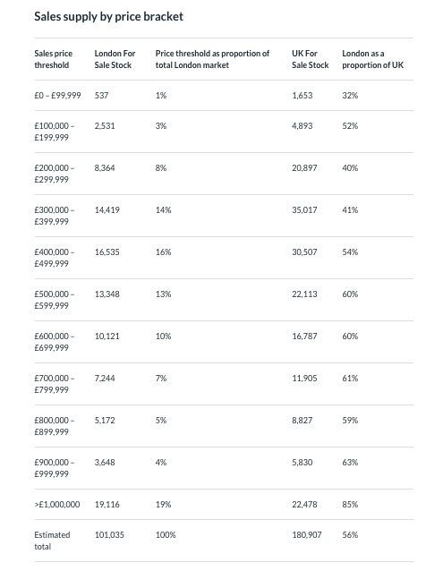 目前在伦敦挂牌出售的百万英镑以上的房产有19,116套,占市场总存量的19%。