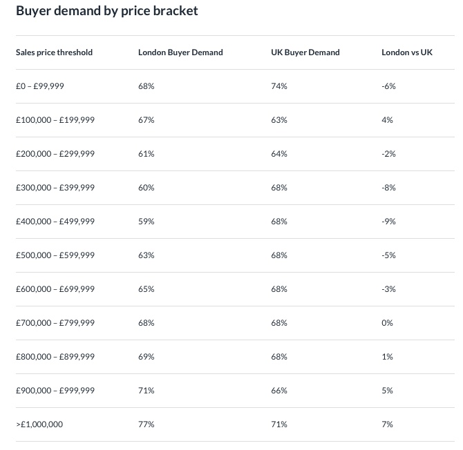 与其他价格区间相比,伦敦100万英镑以上的房地产市场有更多的买卖需求。