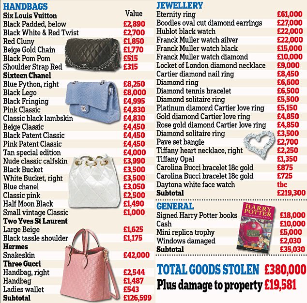 这一次,盗窃团伙偷走了总共价值38万英镑的包包,珠宝,还有一本珍藏的哈利波特首版书
