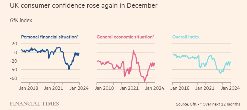 - GfK的最新数据显示,英国消费者信心在12月份连续第二个月上升,这表明家庭可能更倾向于在今年圣诞节消费…