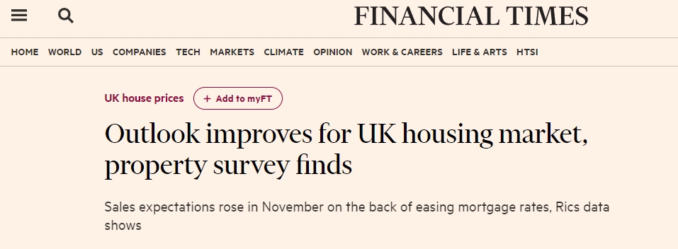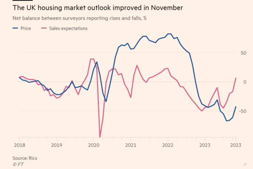 RICS的最新调查发现,随着抵押贷款利率不断下降,英国房地产市场前景在11月份有所改善,标志着自2022年初以来销售预期首次上升。