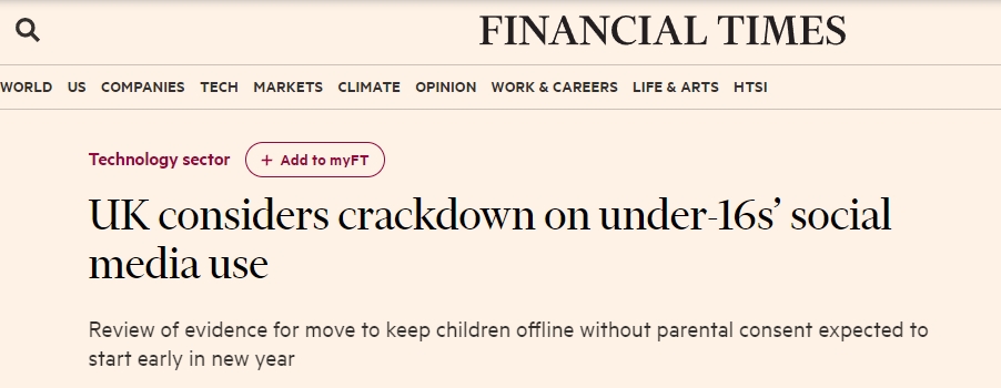 为让儿童合理使用互联网,英国政府正在考虑对使用社交媒体平台的16岁以下青少年进行打击,除非他们获得家长许可。