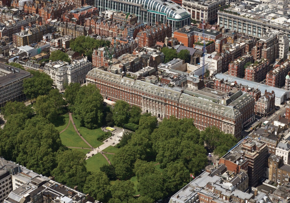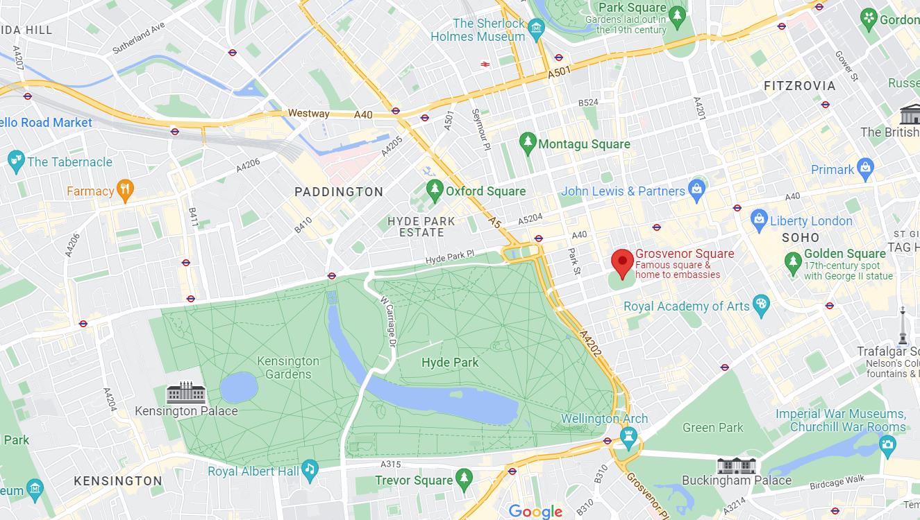 Grosvenor Square距离海德公园(Hyde park)和王室官方府邸白金汉宫都不远。