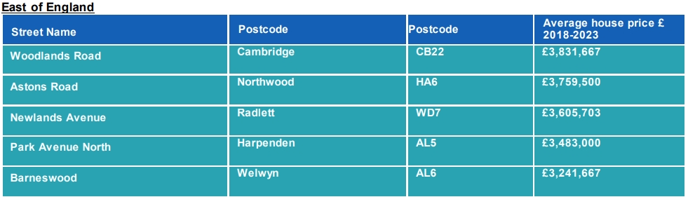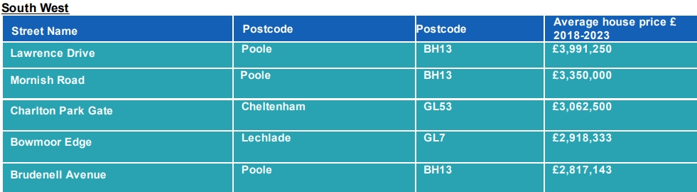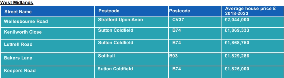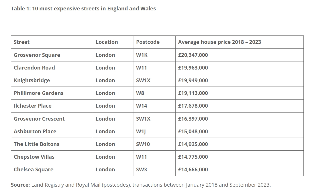 如下图所示:英国最贵10大街区(均价为Halifax根据2018至2023年期间的交易计算)。