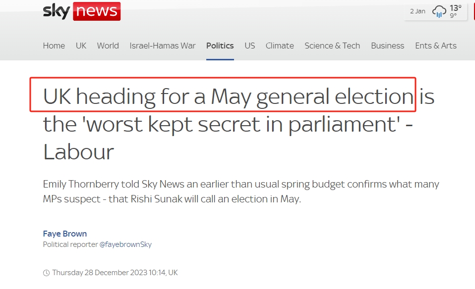 但大部分人预计,新一轮大选预计会在2024年秋季举行。而近期,由于财相杰里米·亨特(Jeremy Hunt)宣布政府将提前公布春季预算(定于3月6日),一些人认为大选的日期还要更早。