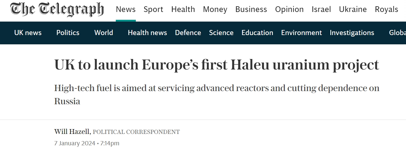 【英国将启动欧洲首个Haleu铀项目】