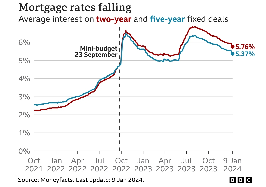 专家表示,贷款机构在年初争夺业务,并预期英国央行今年开始降息,这意味着未来可能有更多利率的下调。