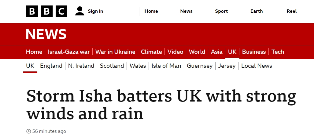 - 在风暴“Isha”登陆英国后,多地出现强风和大雨,导致交通中断,数千户家庭断电…