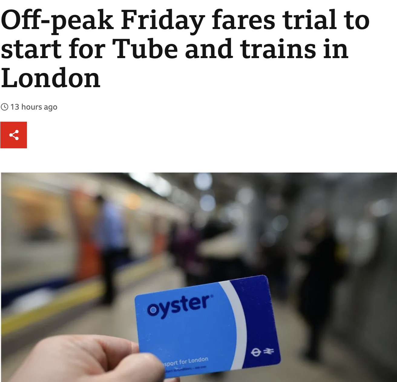 这就是为什么我要求伦敦交通局在周五试行非高峰票价,我鼓励伦敦人在周五乘坐地铁出行。