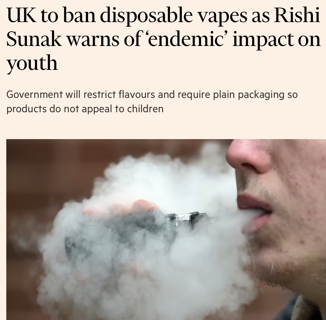 - 据金融时报报道,作为保护儿童健康的一部分,英国将大力打压一次性电子烟。