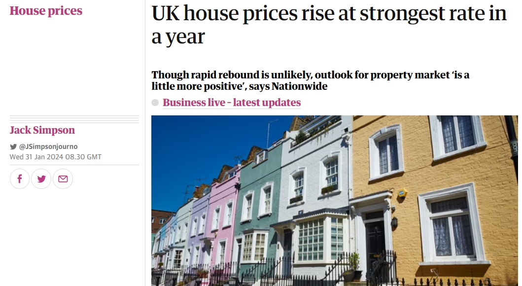 而值得一提的是,随着新的一年通胀持续好转和人们对降息的预期,英国房地产市场出现了一年来最强劲的增长。