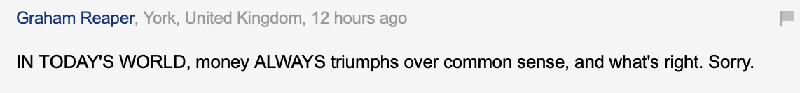 在当今世界,金钱总是凌驾于常识和正确之上。对不起。很惭愧。
