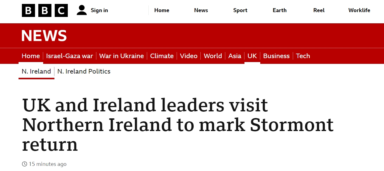 - 英国首相里希·苏纳克抵达贝尔法斯特,开启北爱尔兰访问之旅,以纪念北爱尔兰地方议会恢复正常运转…