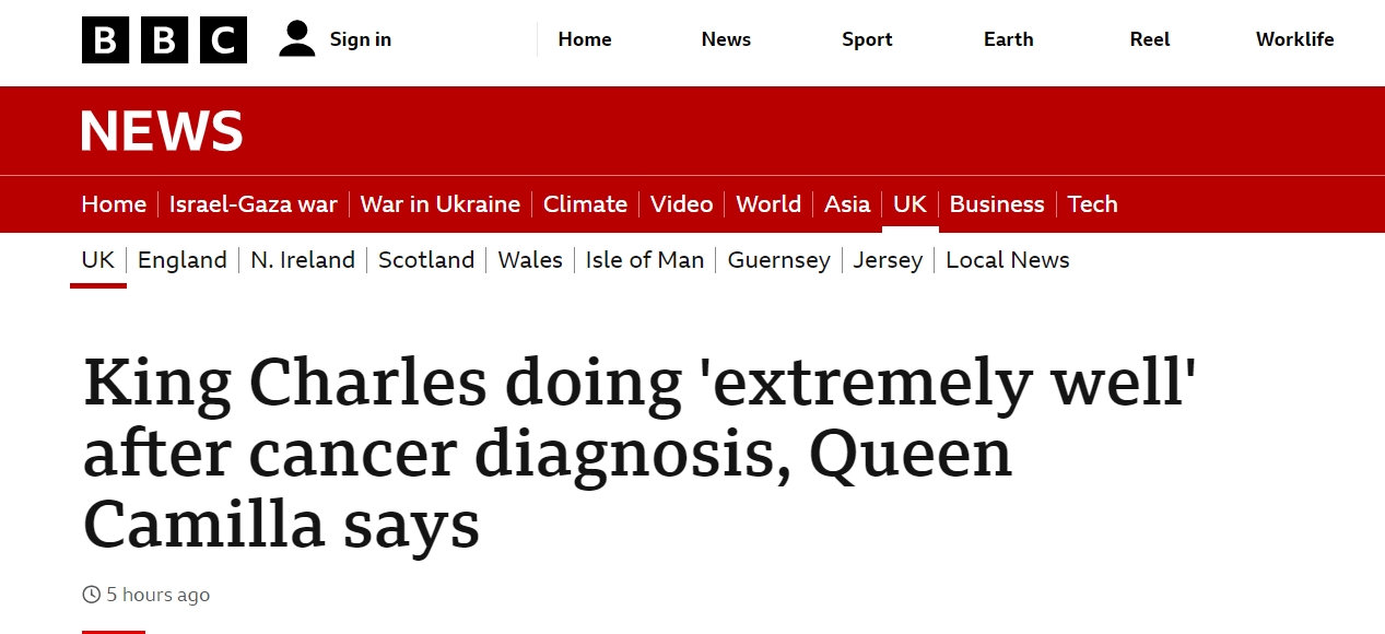 近日,卡米拉王后在活动现场表示,查尔斯国王开始接受癌症治疗后,“恢复得非常好”。