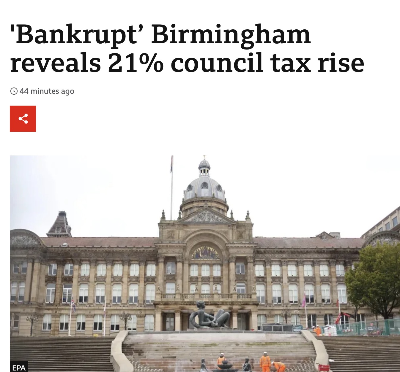 据英国媒体报道,已经宣布破产的伯明翰市议会((Birmingham City Council))宣布: