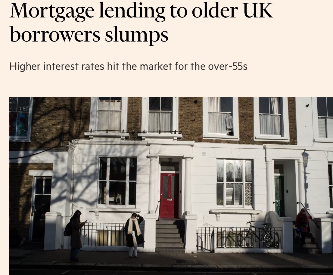2023年的第四季度,向年长的英国借款人发放的贷款大幅下滑,更高的利率打击了55岁以上人群的市场。