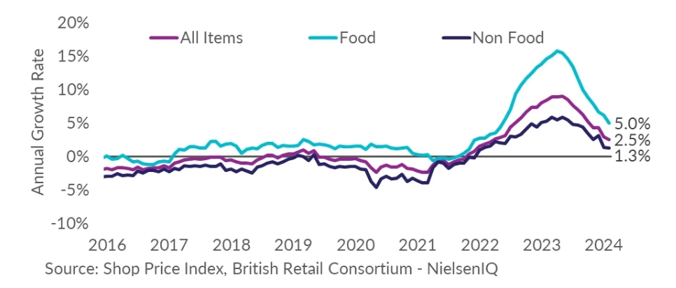 而整体商店价格通胀率从1月份的2.9%降至了2.5%,为2022年3月以来的最低水平。