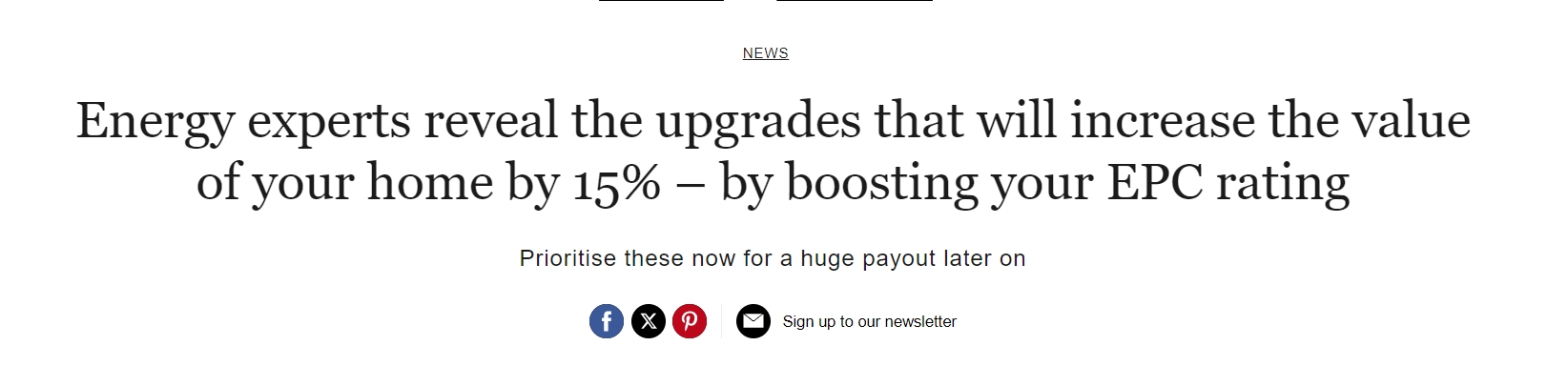 由于买家对此类房产的追求,将房屋的EPC评级从F提高到C则可以将其整体价值提高15%。