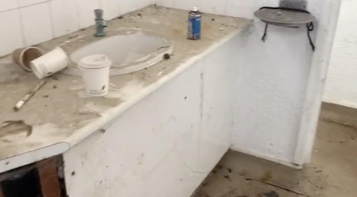 走进这个公厕,目前室内破败不堪,年久失修的样子。到处都是泥土和碎片。