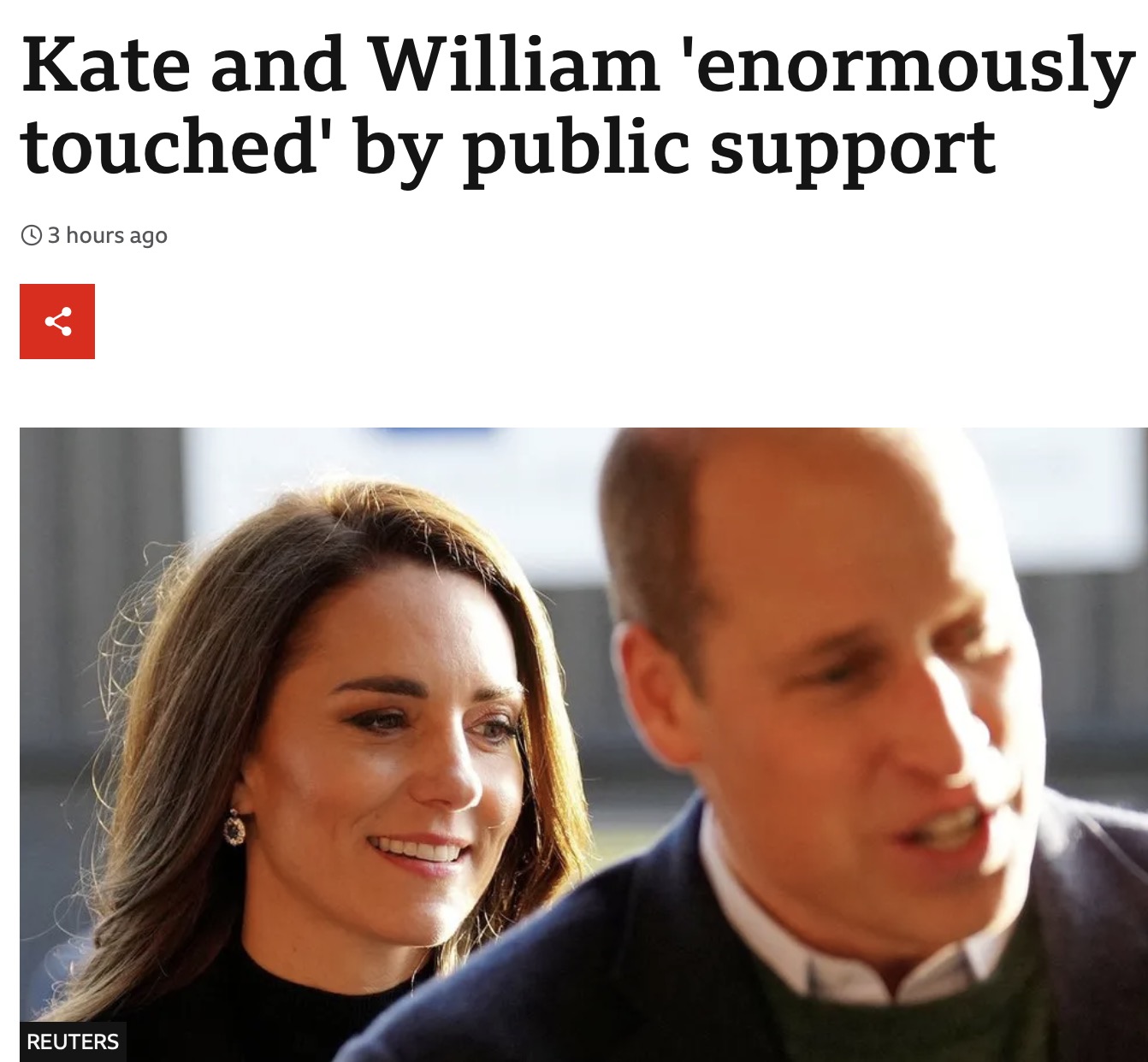 - 肯辛顿宫的一位发言人表示:在凯特王妃公开自己患癌的消息之后,他们夫妻俩收到了大批善意的信息和信件,夫妻俩感谢了外界的关心和支持,并表示对此非常感动。
