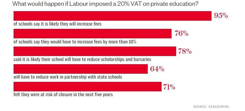 民意调查还显示,近五分之四的学校表示,如果工党对私立教育征收增值税,他们可能会减少奖学金和助学金。近三分之二的学校表示,他们必须减少与公立学校的合作。