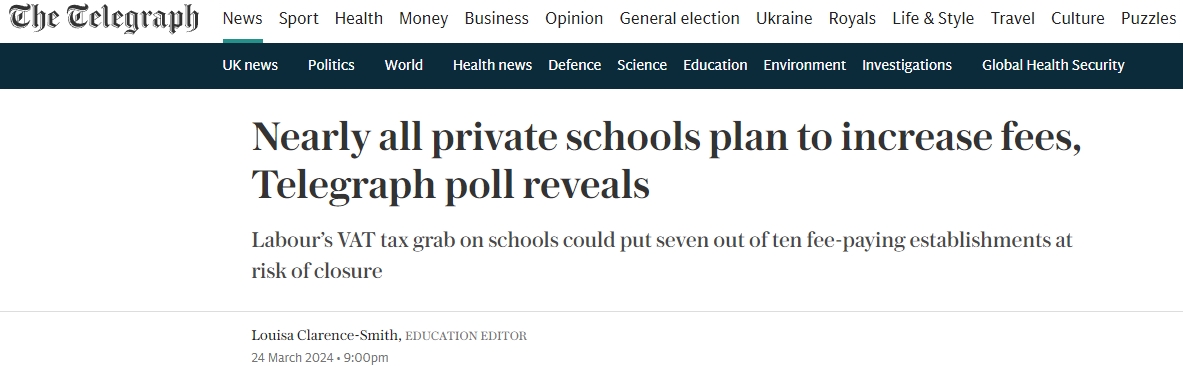- 由于担心工党上台后会提高税收,几乎每所私立学校都计划提高学费…