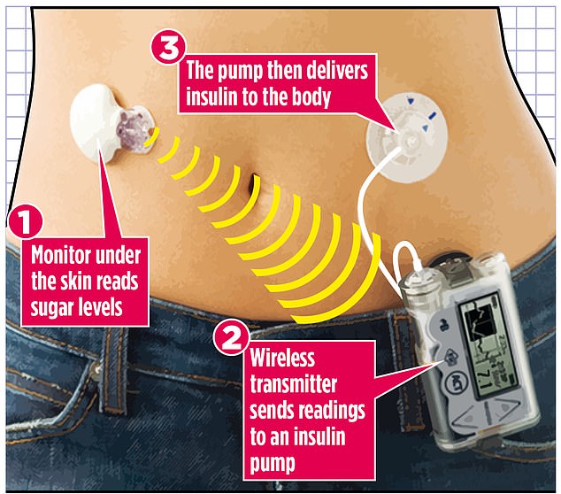 这种突破性的治疗设备可以持续监测人体的血糖,然后通过泵自动调整胰岛素的用量。据英国糖尿病协会介绍,该系统被称为混合闭环系统,有时也被称为“人工胰腺”治疗。其中血糖监测器、胰岛素泵和手机上的软件可以相互通信。