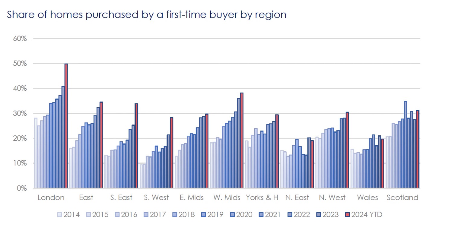 - 今年迄今为止,英国33%的房屋购买是由首次购房者购买的。这创下了首次购房者买房活动占比的记录,尤其是在伦敦和英格兰东南部。