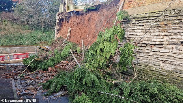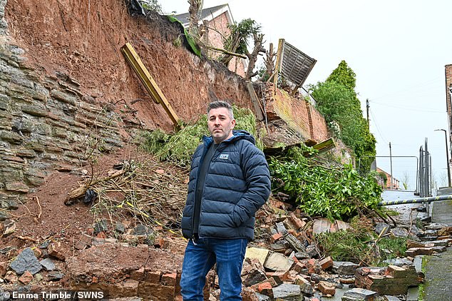 今年2月9日,几周的大暴雨导致他家房子边缘处的土墙倒了。