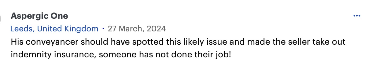 他的产权转让律师应该发现这个问题,并让卖方赔偿,有人没有完成他们的工作!