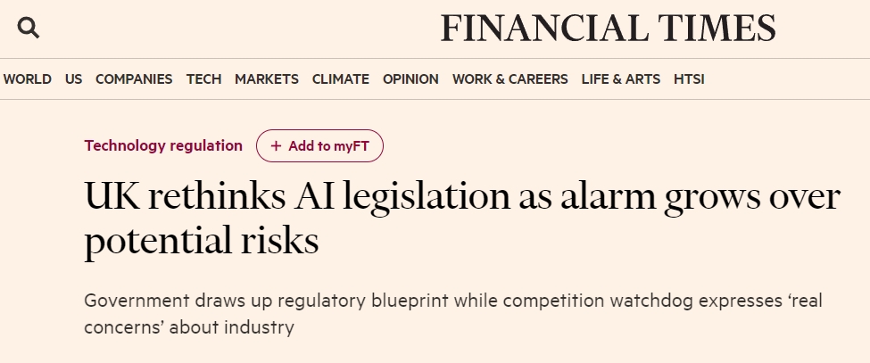 - 据报道,英国政府正开始起草监管人工智能的新立法…
