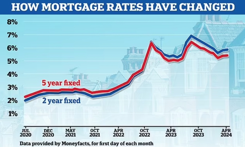 根据Moneyfacts的数据,自2月初以来,两年期固定抵押贷款产品的平均利率已从5.56%上升至5.81%。与此同时,五年期固定产品的平均利率从5.18%上升至5.38%。